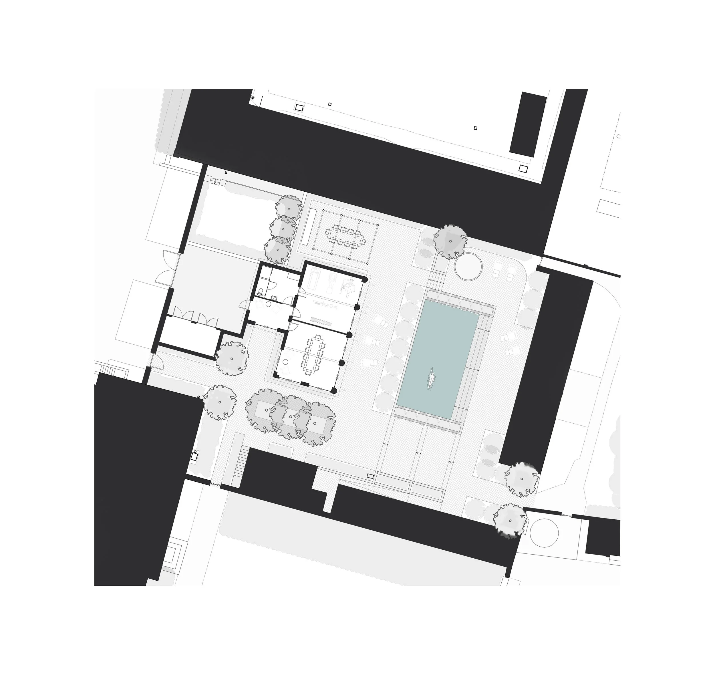 NCA were instructed to undertake a comprehensive re-planning of the masterplan for a Grade II listed Manor in Northamptonshire. This included the re-appropriation of the existing service yard to provide a wellness centre, and home office suite to serve the principal dwelling. The re-planning of the sprawling grounds included the formation of wildflower meadows, new kitchen garden and large Victorian glasshouse to be built against the rear of the stable block.